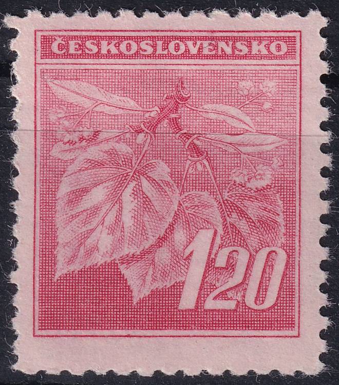 1945, ČSR II, 0378VV, Výplatní známka: Lipová ratolest ✶✶