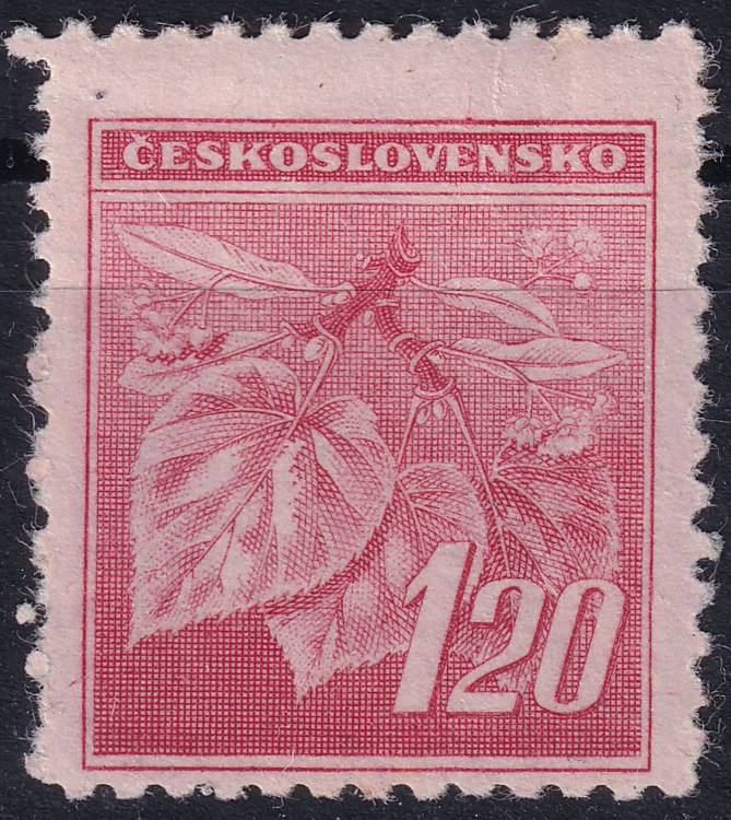 1945, ČSR II, 0378VV, Výplatní známka: Lipová ratolest ✶✶