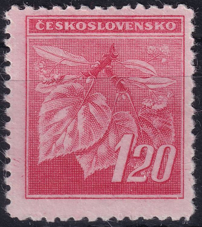 1945, ČSR II, 0378VV, Výplatní známka: Lipová ratolest ✶✶
