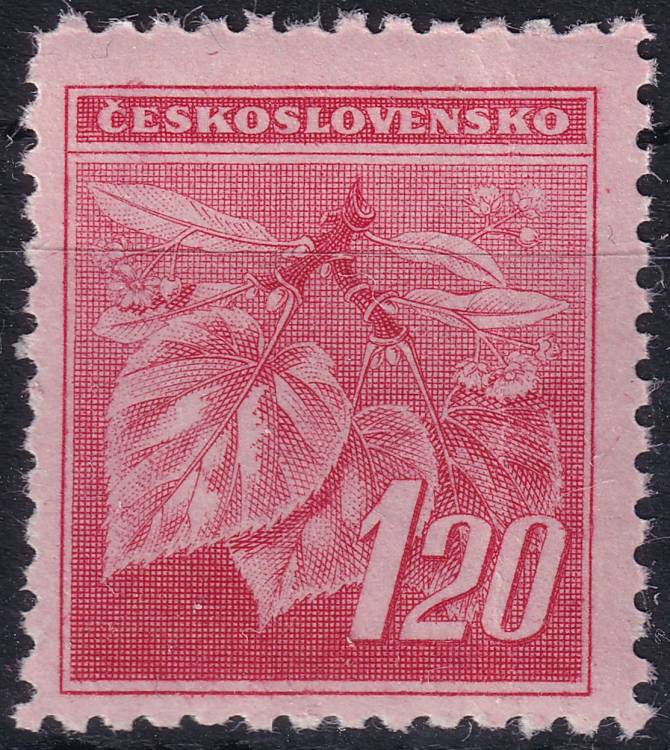 1945, ČSR II, 0378VV, Výplatní známka: Lipová ratolest ✶✶