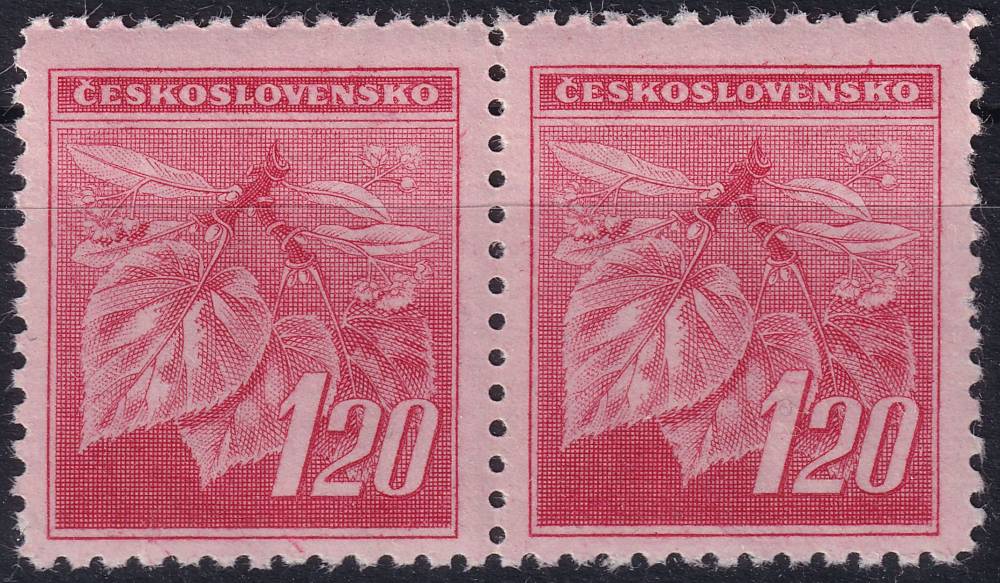 1945, ČSR II, 0378VV, Výplatní známka: Lipová ratolest ✶✶ ⊟