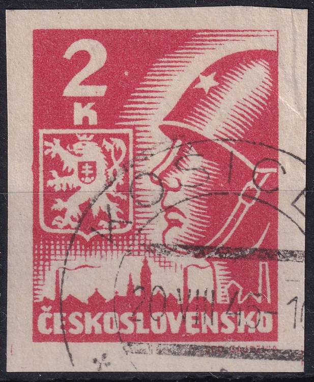 1945, ČSR II, 0354, Výplatní známka: Košické vydání: Hlava rudoarmějce a státní znak ⊙