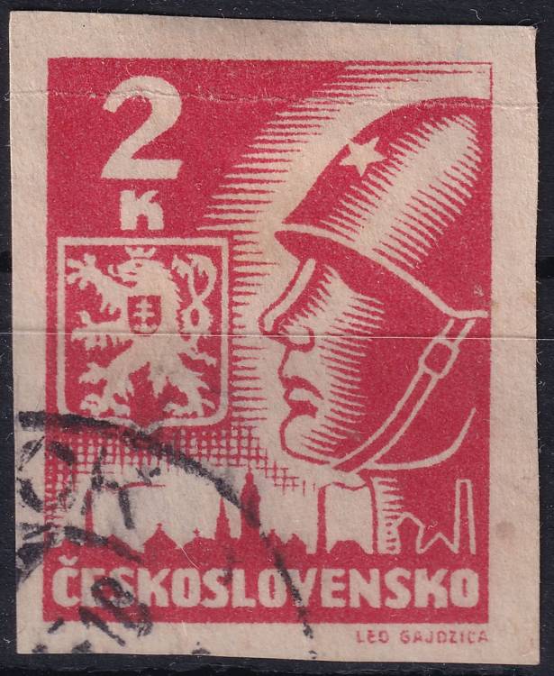 1945, ČSR II, 0354, Výplatní známka: Košické vydání: Hlava rudoarmějce a státní znak ⊙