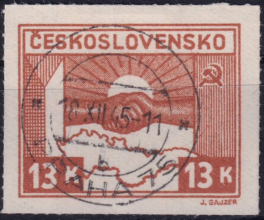 1945, ČSR II, 0358, Výplatní známka: Košické vydání: Symbol spojenectví ČSR-SSSR ⊙