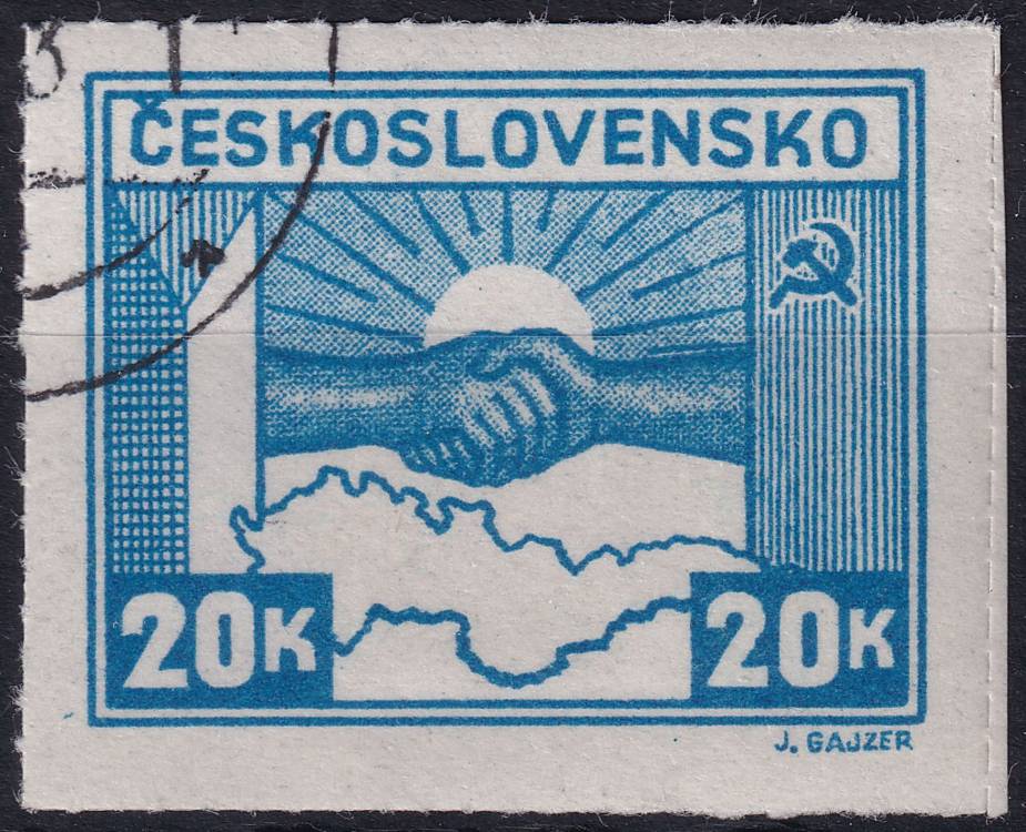 1945, ČSR II, 0359, Výplatní známka: Košické vydání: Symbol spojenectví ČSR-SSSR ⊙