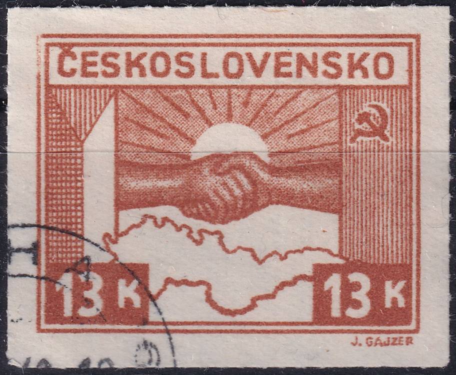 1945, ČSR II, 0358DV, Výplatní známka: Košické vydání - Symbol spojenectví ČSR-SSSR ⊙