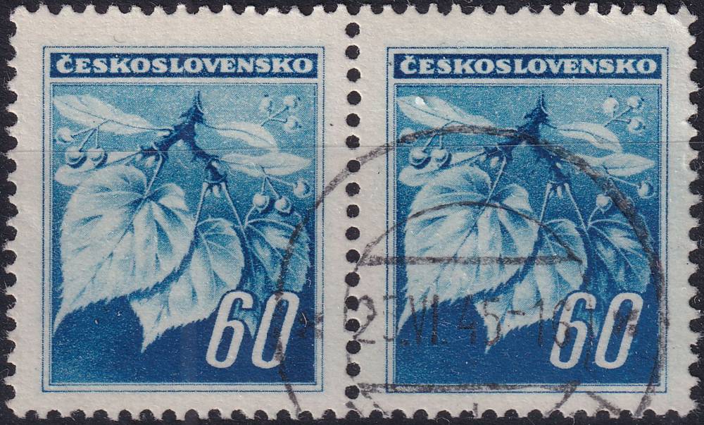 1945, ČSR II, 0375, Výplatní známky: Lipová ratolest ⊙ ⊟