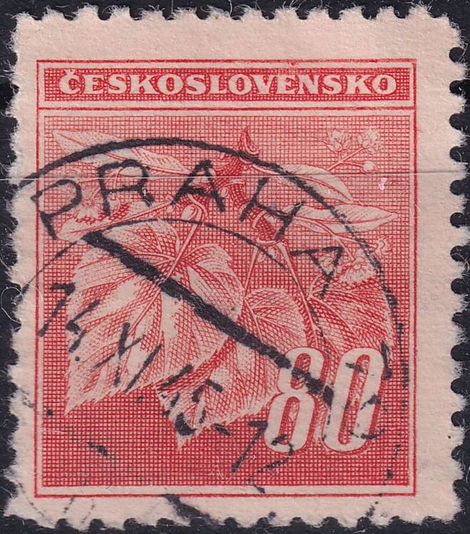 1945, ČSR II, 0377, Výplatní známka: Lipová ratolest ⊙