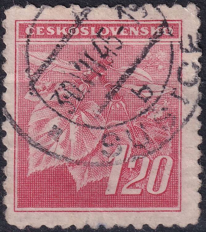 1945, ČSR II, 0378, Výplatní známka: Lipová ratolest ⊙