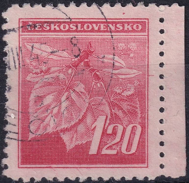1945, ČSR II, 0378, Výplatní známka: Lipová ratolest ⊙ o P