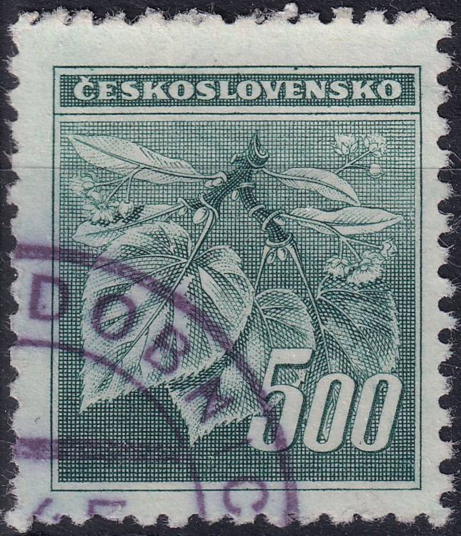 1945, ČSR II, 0380, Výplatní známka: Lipová ratolest ⊙