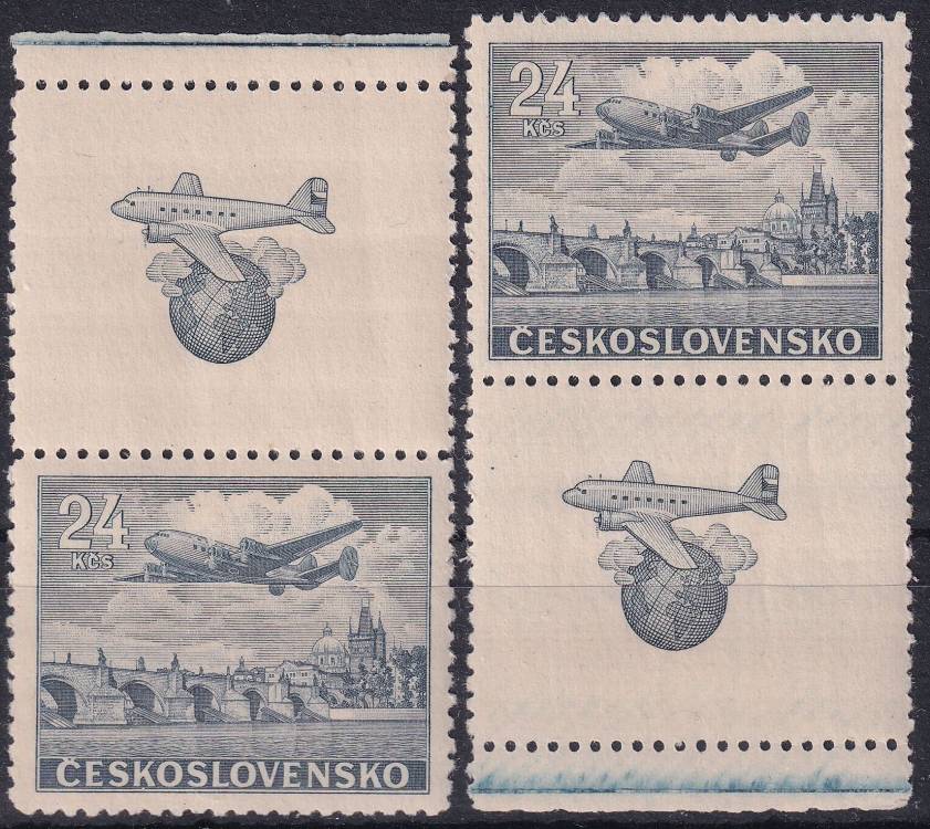 1946, ČSR II, L16aK, Letecká známka: Let Praha - New York ✶✶ o