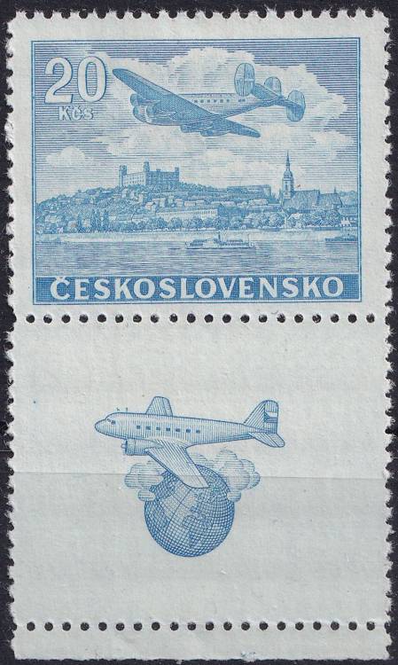 1946, ČSR II, L22KD, Letecká známka: Letecké motivy - Letadlo nad Bratislavou ✶✶ o D