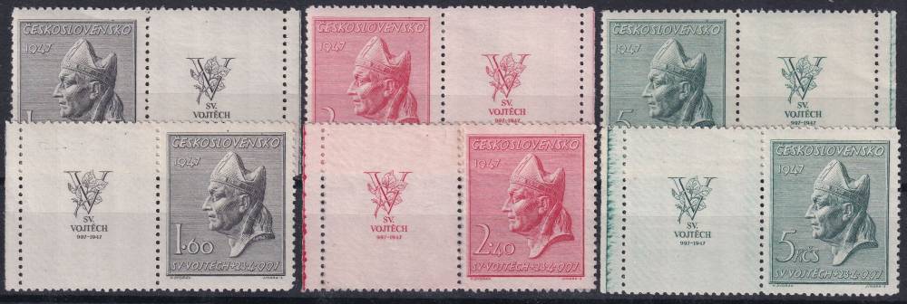 1947, ČSR II, 0450/0452K, 950. výročí smrti svatého Vojtěcha ✶✶ o