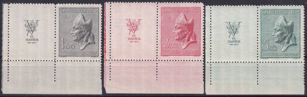 1947, ČSR II, 0450/0452KL, 950. výročí smrti svatého Vojtěcha ✶✶ L D