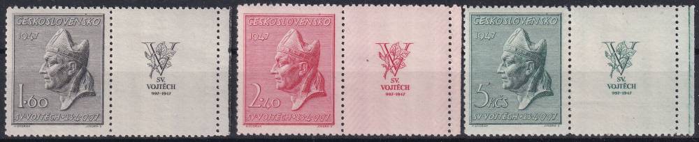 1947, ČSR II, 0450/0452KP, 950. výročí smrti svatého Vojtěcha ✶ o P