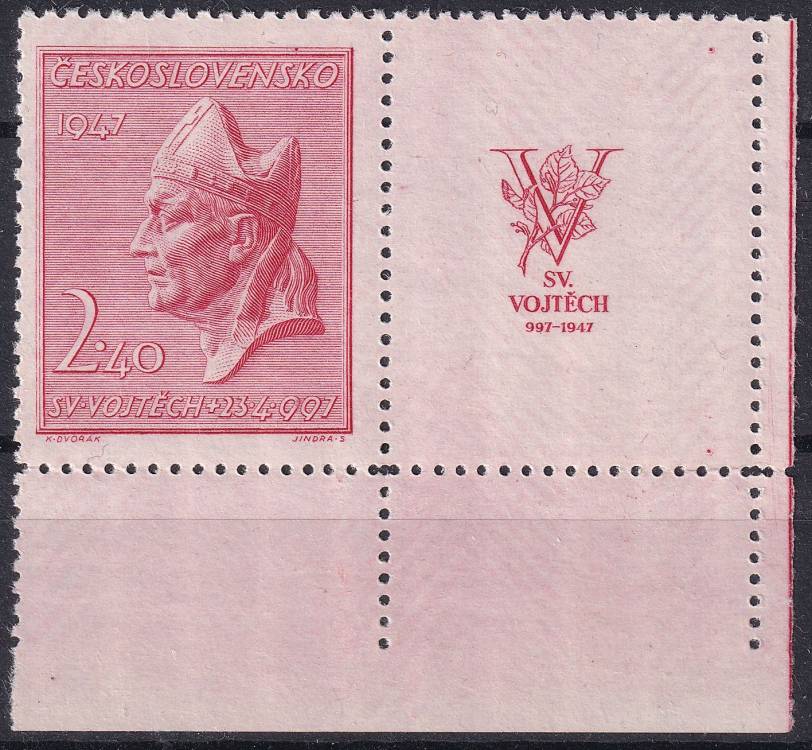 1947, ČSR II, 0451KP, 950. výročí smrti svatého Vojtěcha ✶✶ P D