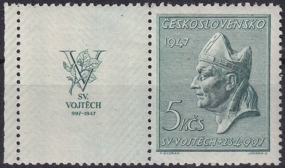 1947, ČSR II, 0452KL, 950. výročí smrti svatého Vojtěcha ✶✶ o L