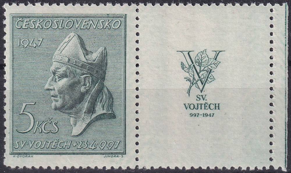 1947, ČSR II, 0452KP, 950. výročí smrti svatého Vojtěcha ✶✶ o P