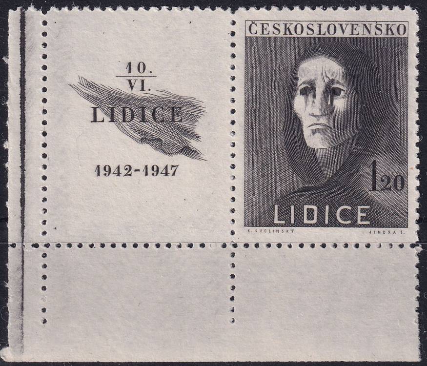 1947, ČSR II, 0453KL, 5. výročí vyhlazení Lidic: Trpící žena ✶✶ L D