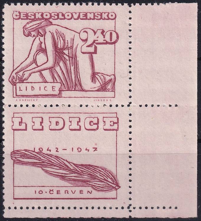 1947, ČSR II, 0455KD, 5. výročí vyhlazení Lidic: Trpící žena ✶✶ P D