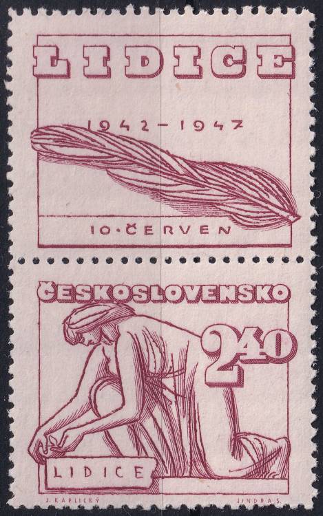 1947, ČSR II, 0455KH, 5. výročí vyhlazení Lidic: Klečící žena ✶✶