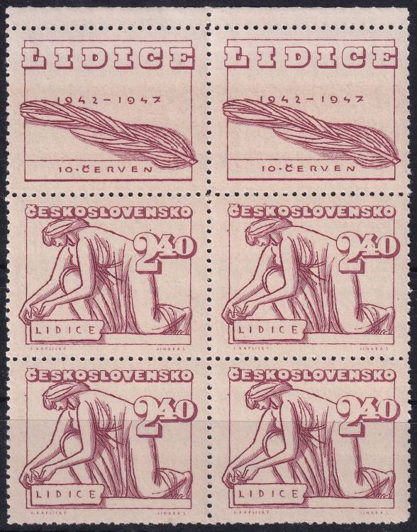 1947, ČSR II, 0455KH, 5. výročí vyhlazení Lidic: Klečící žena ✶✶ ⊞ o H
