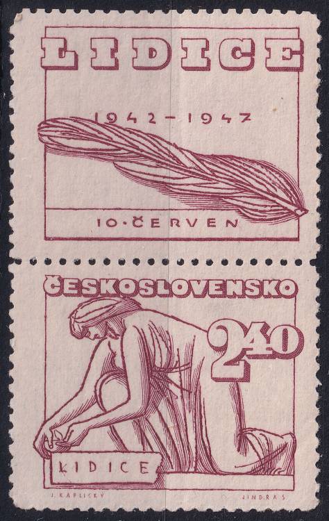 1947, ČSR II, 0455KH, 5. výročí vyhlazení Lidic: Klečící žena ✶
