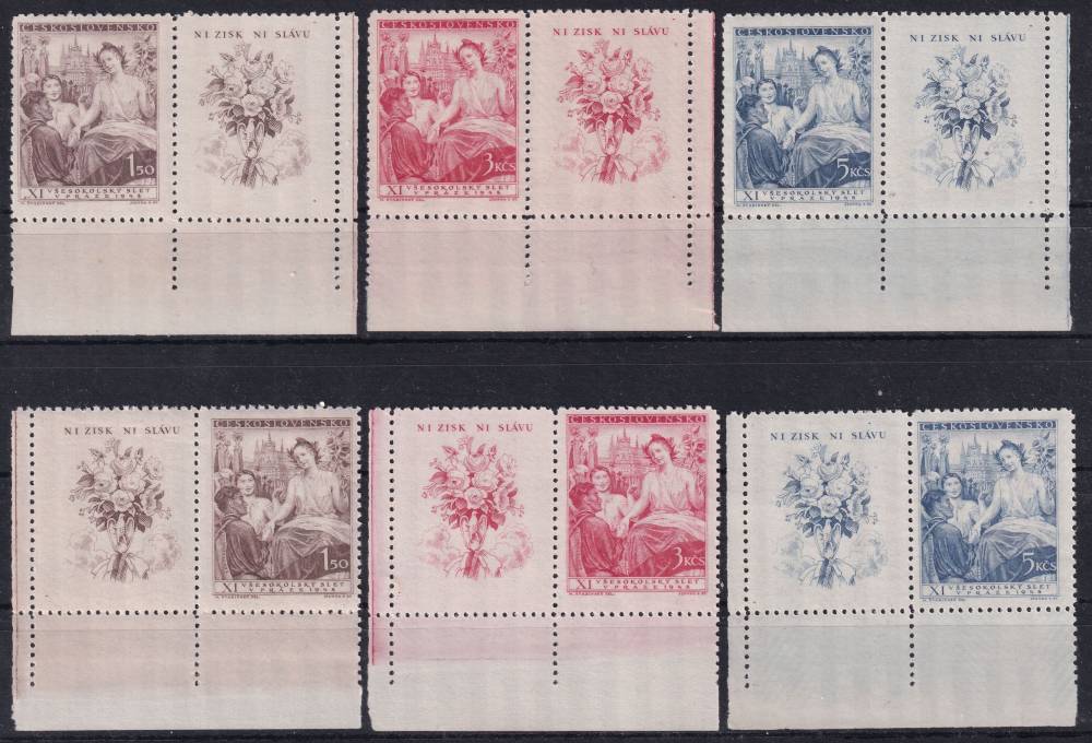 1948, ČSR II, 0467/0469, XI. všesokolský slet v Praze (alegorie) ✶✶ K L+P D