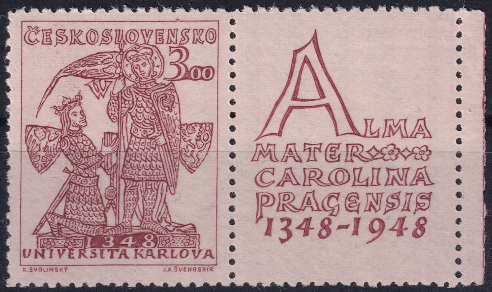 1948, ČSR II, 0472, 600. výročí založení Karlovy univerzity: Karel IV. a sv. Václav ✶✶ KP o P