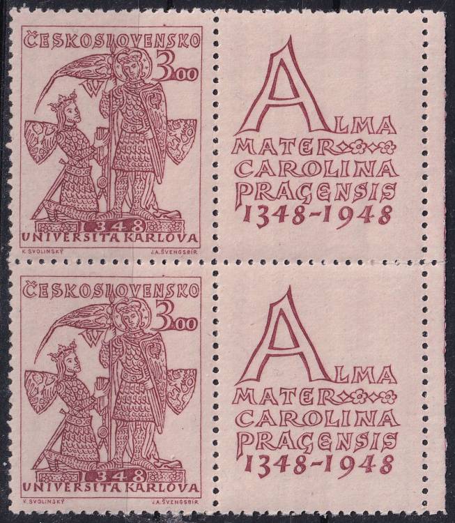 1948, ČSR II, 0472, 600. výročí založení Karlovy univerzity: Karel IV. a sv. Václav ✶✶ KP ⊟ o P