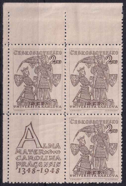 1948, ČSR II, 0471, 600. výročí založení Karlovy univerzity: Karel IV. a sv. Václav ✶✶ VK-3 ⊞ L H