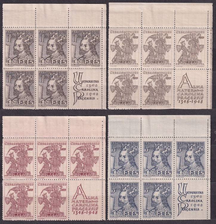 1948, ČSR II, 0470/0473, 600. výročí založení Karlovy univerzity ✶✶ VK-4 ⊞ P H