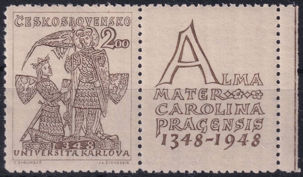 1948, ČSR II, 0471, 600. výročí založení Karlovy univerzity: Karel IV. a sv. Václav ✶ KP o P