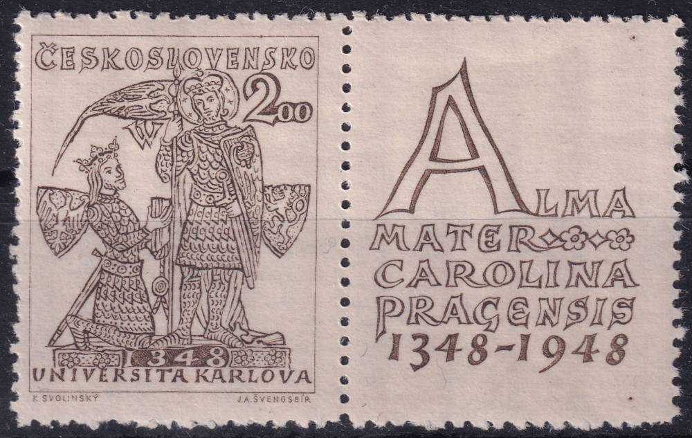 1948, ČSR II, 0471, 600. výročí založení Karlovy univerzity: Karel IV. a sv. Václav ✶ KP