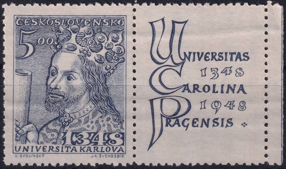 1948, ČSR II, 0473, 600. výročí založení Karlovy univerzity: Karel IV. ✶ KP o P