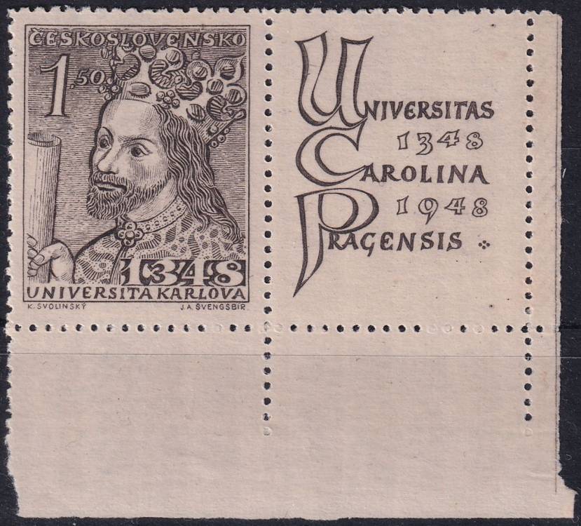 1948, ČSR II, 0470, 600. výročí založení Karlovy univerzity: Karel IV. ✶ KP P D