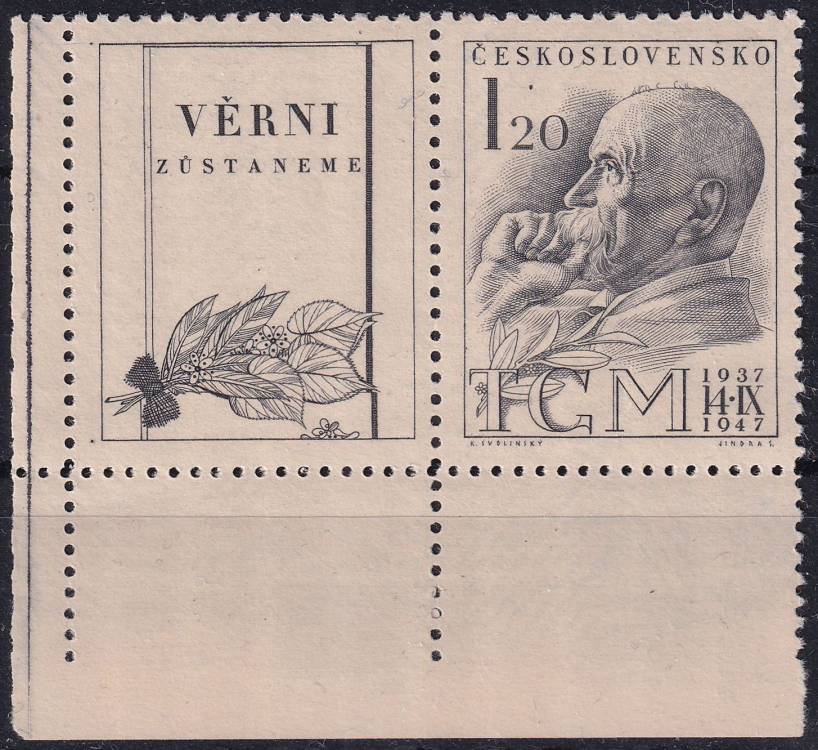 1947, ČSR II, 0458KL, 10. výročí úmrtí T. G. Masaryka ✶✶ L D