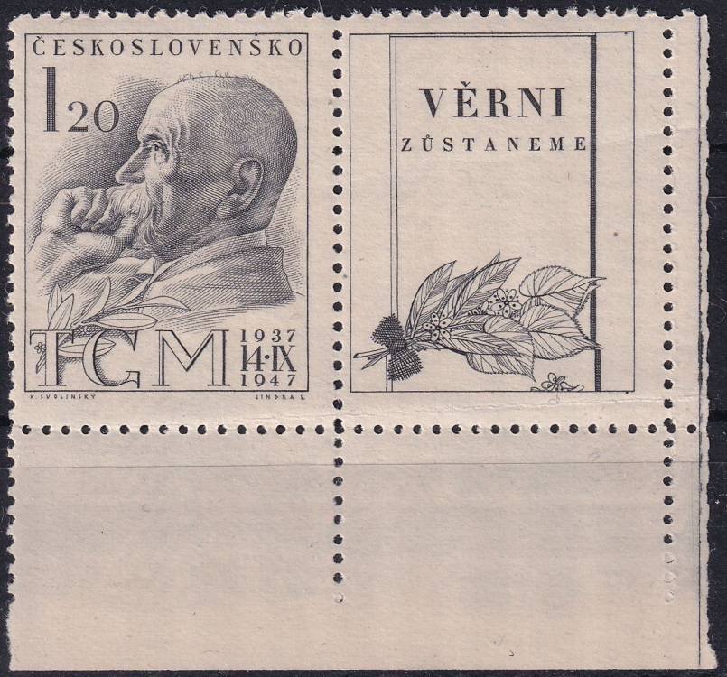 1947, ČSR II, 0458KP, 10. výročí úmrtí T. G. Masaryka ✶✶ P D