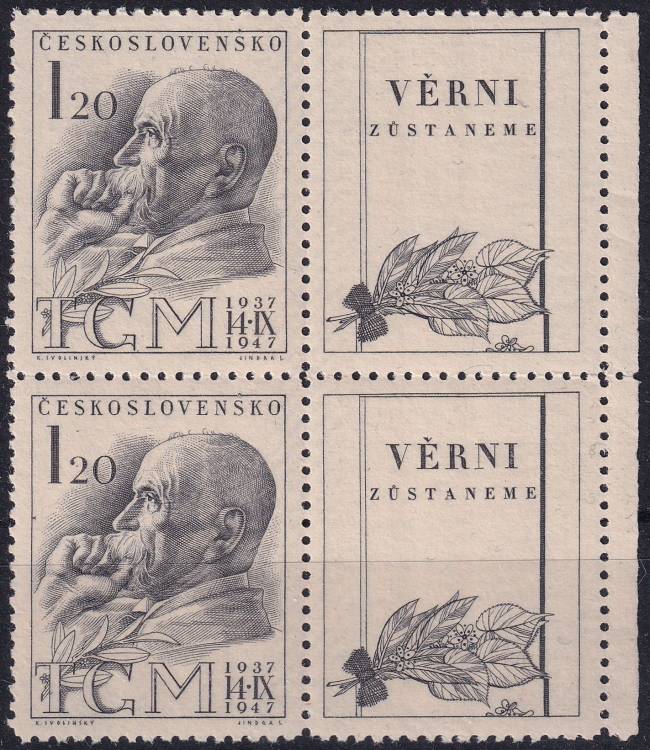 1947, ČSR II, 0458KP, 10. výročí úmrtí T. G. Masaryka ✶✶ ⊟ o P