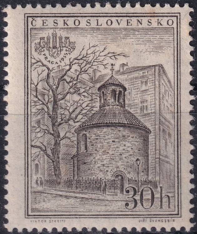 1955, ČSR II, 0853A, Mezinárodní výstava poštovních známek PRAGA 1955: Rotunda kaple u svatého Kříže ✶