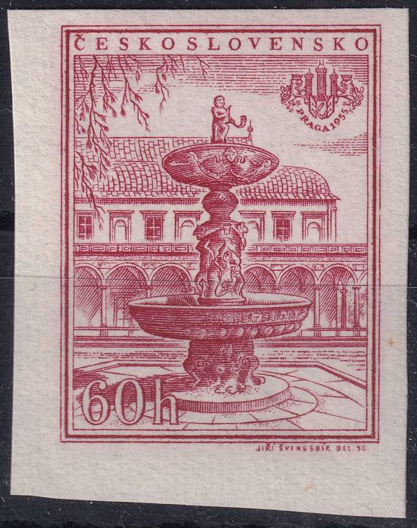 1955, ČSR II, 0855B, Mezinárodní výstava poštovních známek PRAGA 1955: Letohrádek Belveder ✶