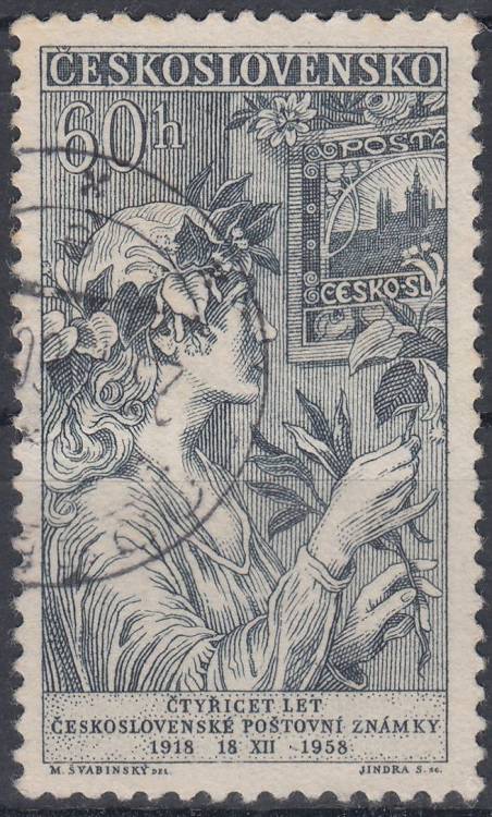 1958, ČSR II, 1032, 40 let čs. poštovní známky, ⊙
