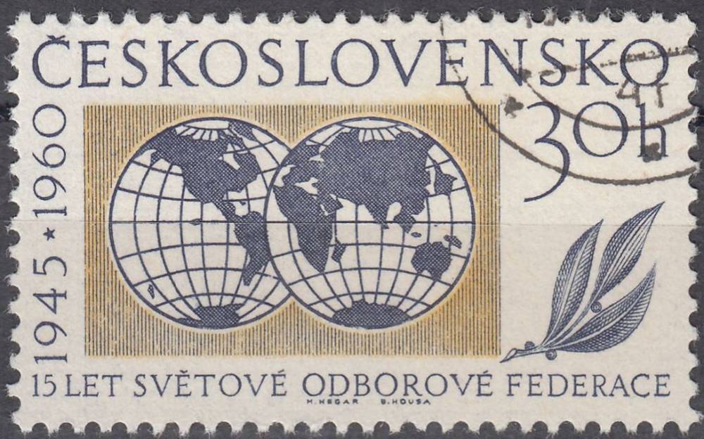 1960, ČSR II, 1141, 15. výročí Světové odborové federace, ⊙