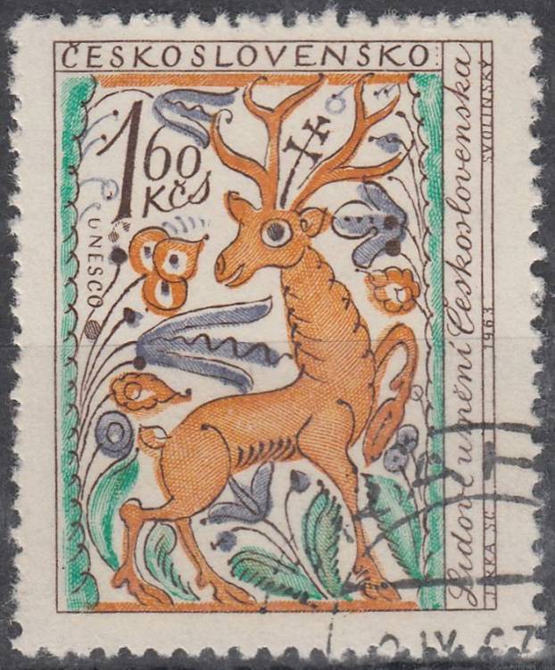 1963, ČSR II, 1335, České a slovenské lidové umění: Detail z keramického džbánu, ⊙