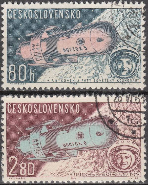 1963, ČSR II, L54/L55, Letecké známky: Let sovětských kosmonautů ⊙