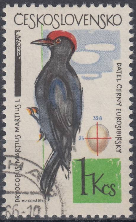 1964, ČSR II, 1404, Lesní a zahradní ptactvo: Datel černý, ⊙