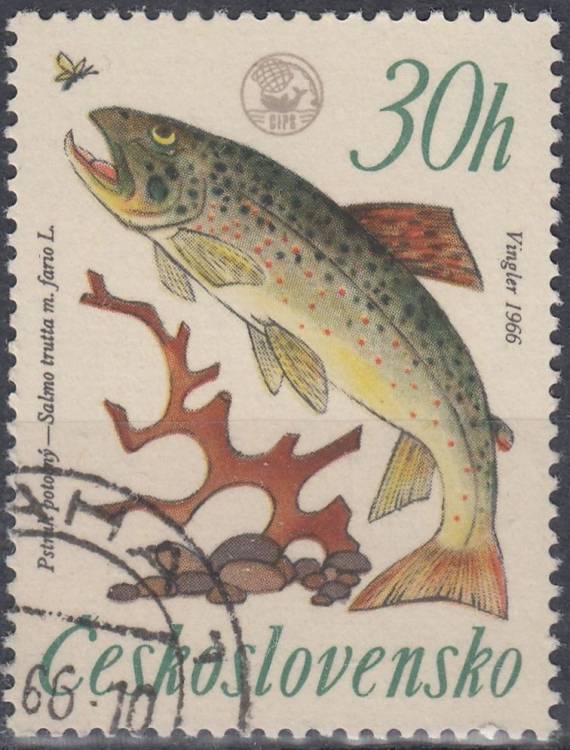 1966, ČSR II, 1517, Mistrovství světa v rybolovné technice: Pstruh potoční, ⊙