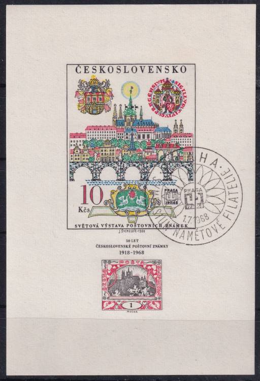 1968, ČSR II, A1694I, 50. výročí vydání první československé známky ⊙