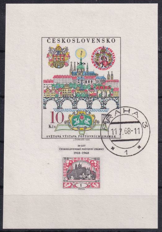 1968, ČSR II, A1694II, 50. výročí vydání první československé známky ⊙